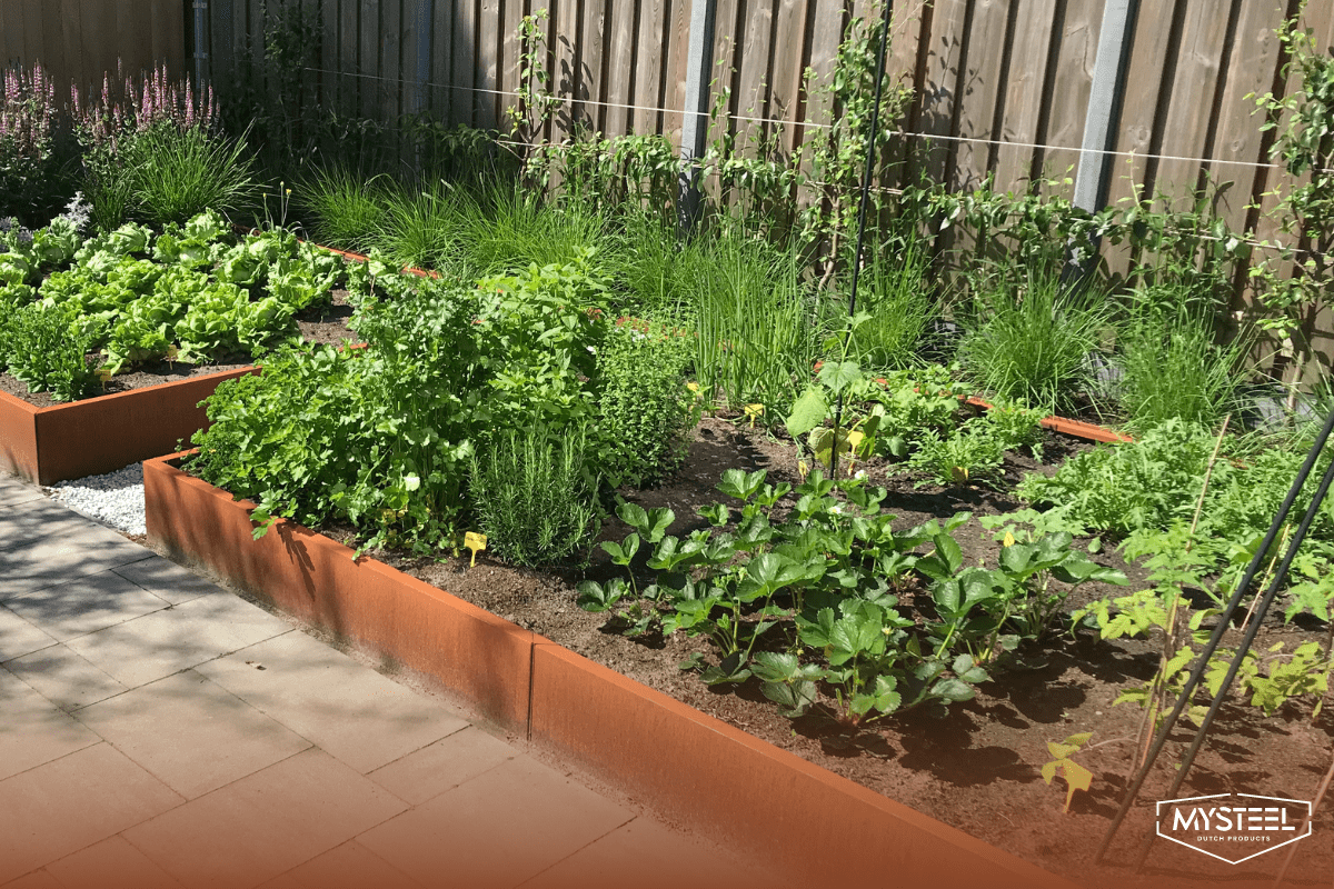 O aço corten é perfeito para canteiros de horta devido à sua longa durabilidade, aparência agradável e fácil manutenção. O material ajuda o solo a aquecer mais rapidamente, o que é bom para o crescimento das plantas. Além disso, o visual enferrujado do aço corten dá ao seu jardim um caráter especial.