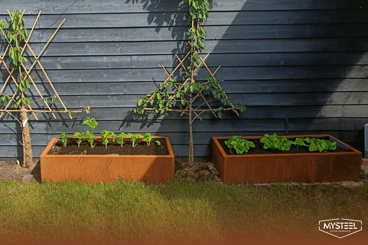 Uma das principais razões pelas quais o aço corten é perfeito para o seu canteiro de horta é porque o material é muito forte. O aço corten pode facilmente suportar a terra elevada com muito areia e plantas. Nos canteiros de horta altos, a pressão das plantas e da areia pode ser grande. Com o aço corten, você não precisa ter medo de que seu canteiro quebre; ele oferece uma base firme e estável.