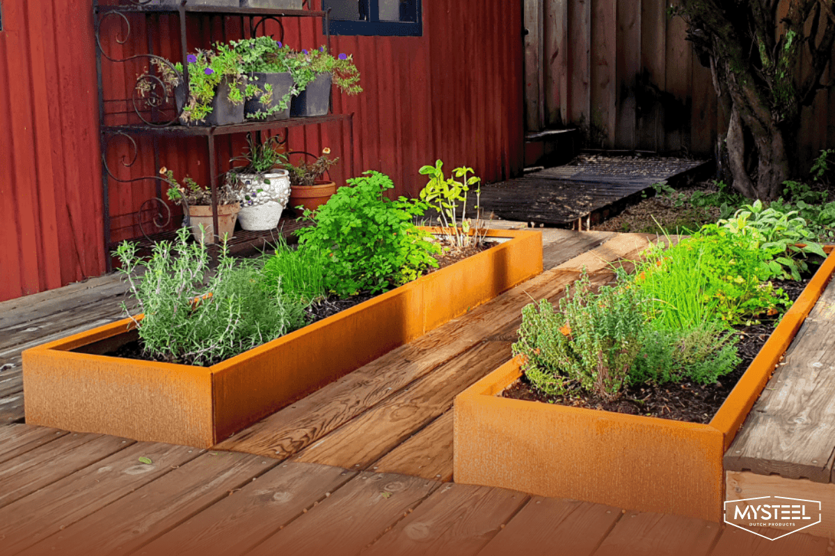 Além disso, jardineiras em aço corten podem ser colocadas dentro de casa se tiverem um fundo e pés ou rodízios. Dessa forma, a terra e o aço corten enferrujado não entram em contato com o chão, evitando que o piso fique sujo. É importante deixar a jardineira enferrujar completamente ao ar livre primeiro.