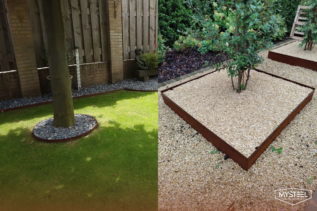 Quer fazer um anel de árvore a partir de uma borda reta? Então o aço corten é uma boa escolha. A flexibilidade do material permite que você curve facilmente as bordas em um anel.