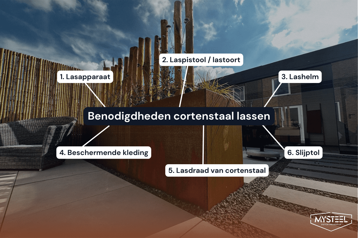 Para soldar aço corten, você precisa de diferentes ferramentas e materiais:
