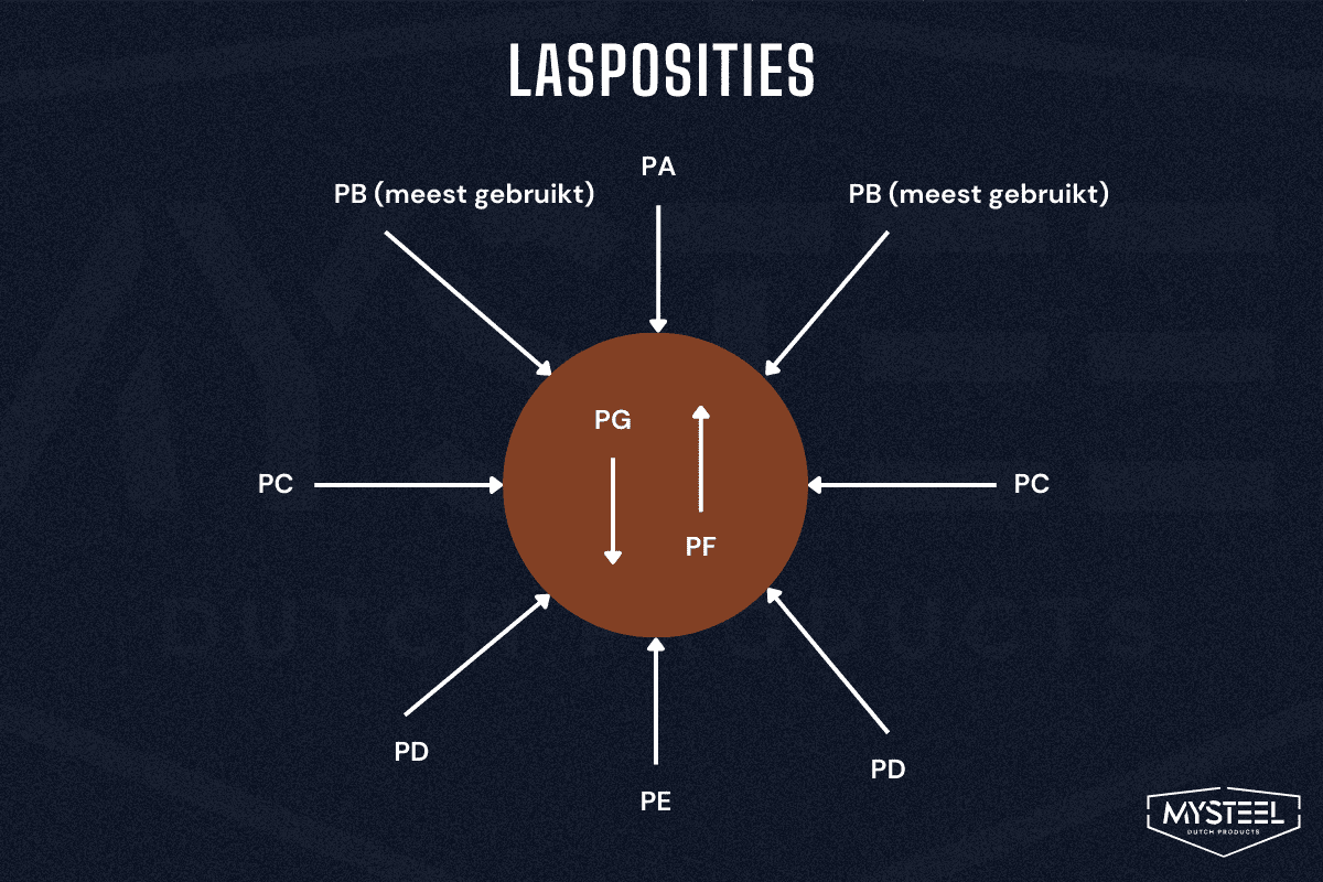 Primeiro, você deve escolher a posição de soldagem correta. No esquema abaixo, você vê diferentes posições possíveis. Cada posição tem uma combinação de letras específica.