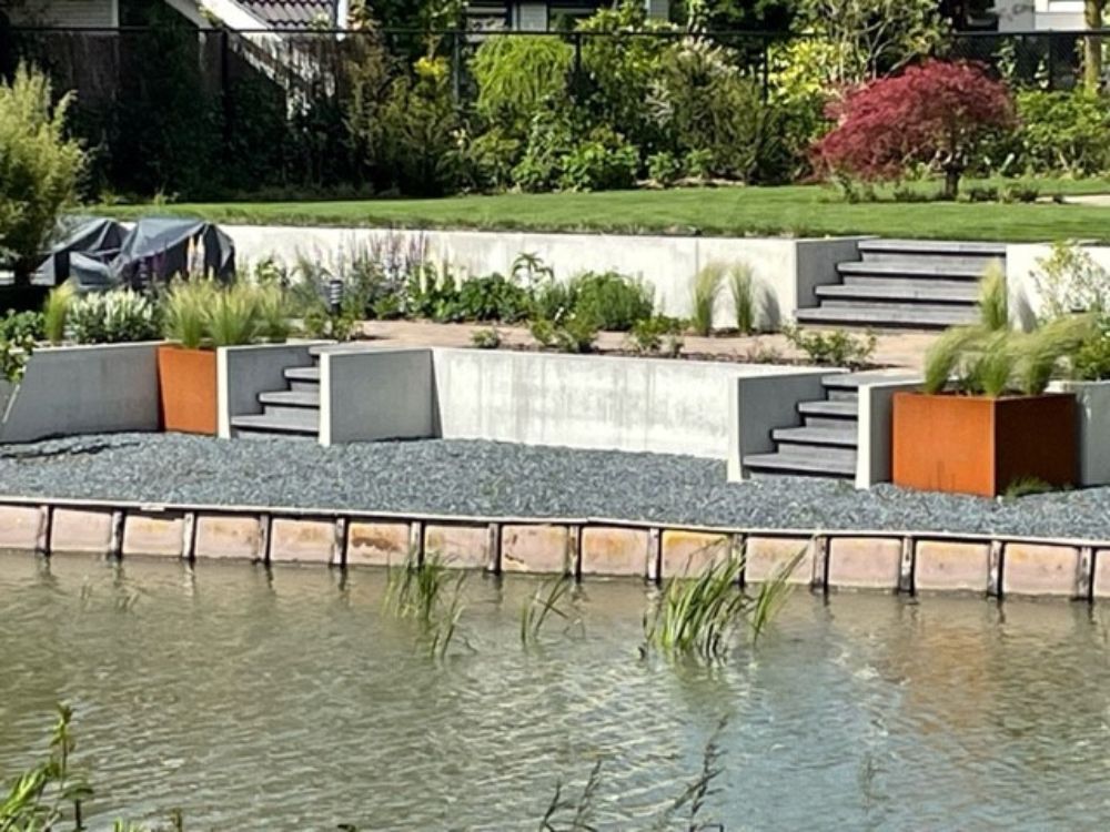 Você mora à beira de um canal, lago ou lagoa? Então a água e a natureza ao redor proporcionam uma atmosfera tranquila. Com produtos de aço corten, você pode dar ao seu jardim à beira da água um toque moderno e robusto. A cor quente de ferrugem desse material forma um belo contraste com a água fresca e o verde vibrante do seu jardim.