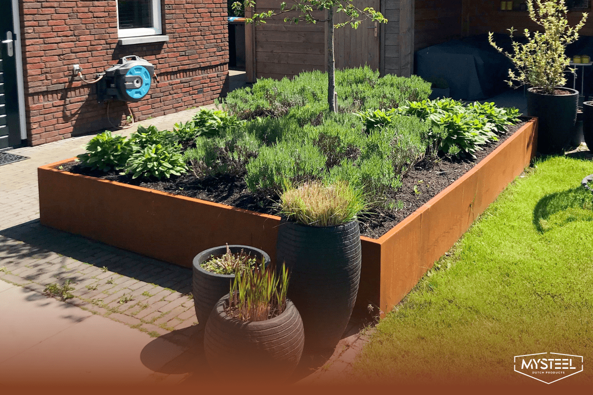 Com paredes de contenção de aço, você também pode formar caixas de plantas elevadas. Esta é uma ótima maneira de adicionar verde, especialmente se você tem pouco espaço.