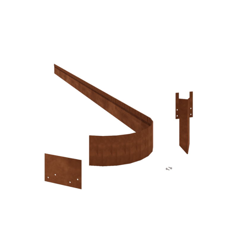 A bordadura é produzida com aço corten de alta qualidade, conhecido por sua camada protetora natural. O processo de ferrugem começa em algumas semanas até meses, desenvolvendo uma coloração laranja-acastanhada quente e visível. Pode levar de 1 a 2 anos para a ferrugem se completar totalmente. O processo pode ser acelerado com o acelerador de ferrugem MySteel.