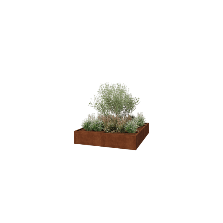 Deixe o seu jardim com um aspeto robusto e moderno com esta espaçosa floreira em aço corten. Mede 200 x 200 x 40 cm e oferece amplo espaço para gramíneas decorativas, pequenas árvores e plantas floridas. O design totalmente soldado garante uma construção contínua e resistente. A floreira é entregue sem placa de base, podendo ser colocada diretamente na terra ou na relva para um aspeto natural. Conta com aço corten de 2 mm, que desenvolve naturalmente uma camada protetora de ferrugem; o processo começa em semanas a meses e pode demorar 1 a 2 anos até completar-se. Encomende agora e desfrute durante anos de um elemento de jardim robusto e de baixa manutenção.
