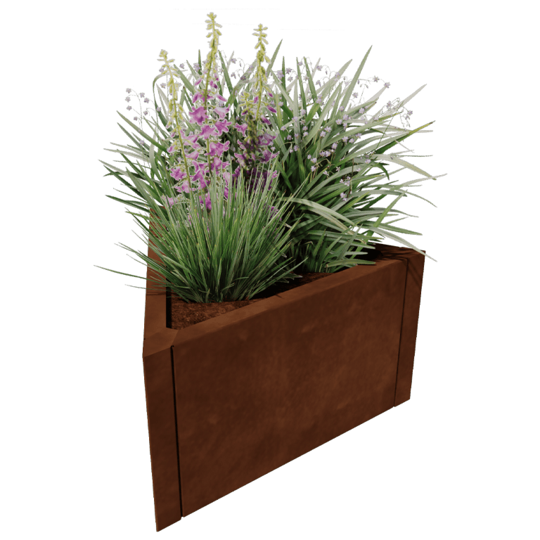 Os painéis dos nossos vasos de plantas modulares são fabricados a partir de chapa de aço Corten de alta qualidade. Este tipo de metal tem a característica única de formar uma pele de óxido (camada de ferrugem) muito densa. A corrosão total é, portanto, impossível. Devido à pele de óxido densa, o material subjacente é protegido do oxigênio, o que retarda fortemente a oxidação, enquanto a corrosão continua. O vaso de plantas de aço Corten é fornecido sem ferrugem, na cor metálica cinza. O processo de ferrugem começa após semanas a 2 meses, não sendo necessário nenhum tratamento para isso. Durante o processo de ferrugem, o vaso pode soltar pigmentos. O aço Corten é uma liga metálica que consiste em ferro, ao qual cobre, fósforo, silício, níquel e cromo foram adicionados.