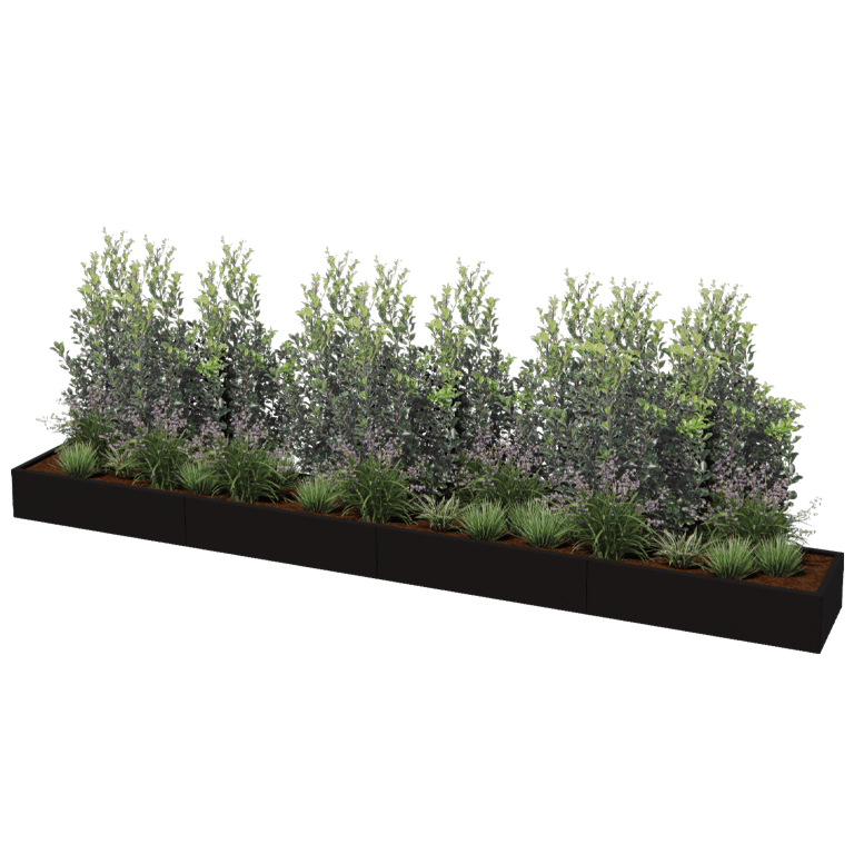 Este vaso de plantas é um vaso modular de aço que é entregue como um kit de montagem. O vaso é montado a partir de painéis soltos e peças de canto. Os vasos podem ser conectados de forma totalmente oculta. Não há fixações visíveis. Graças ao nosso sistema modular, também são possíveis dimensões muito grandes. Ao usar peças de canto, formas únicas podem ser criadas que não estão disponíveis em nenhum outro lugar como padrão. Consulte o manual para mais informações.