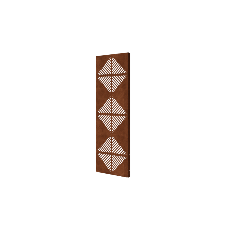 O painel é feito de aço corten de alta qualidade. O processo de ferrugem inicia-se nas primeiras semanas ou meses, desenvolverá uma tonalidade visível entre o laranja e o marrom. Pode levar de 1 a 2 anos para que o processo de oxidação esteja completo. Este processo pode ser acelerado com o acelerador de ferrugem MySteel. Esta camada natural de ferrugem protege o aço contra corrosão adicional, aumentando significativamente sua durabilidade.